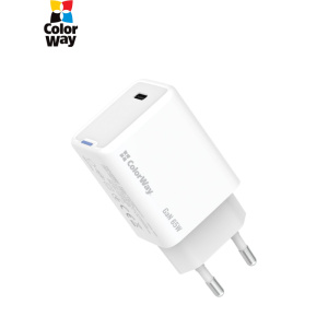 Мережевий зарядний пристрій ColorWay GaN Mini 65W PD Port PPS USB-C White (CW-CHS049PD-WT)
