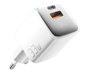 Зарядний пристрій Essager 1xUSB + 1xUSB-C 33W GaN white (ECTAC-JXB02-Z)
