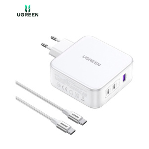 Зарядний пристрій UGREEN 3xUSB 140W GaN (2хUSB-C+USB-A) CD289 with C to C Cable 1.5 м White (15339)