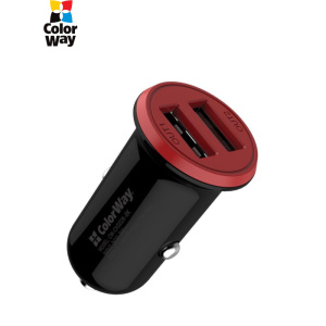 Автомобільний зарядний пристрій ColorWay (2USB,3.4A, 17W) Red/Black (CW-CHA026-BK)