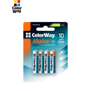 Батарейка ColorWay AAA LR03 Alkaline Power (лужні) * 4 blister (CW-BALR03-4BL)