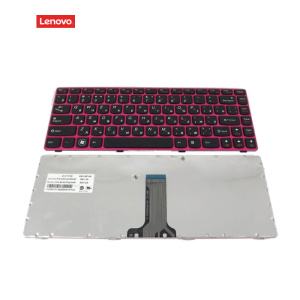Клавіатура для LENOVO IdeaPad Z370, Z470, G470AH, G470GH (RU Black, розова рамка) Оригінал