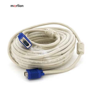 Кабель Merlion VGA 20m, male to male (тато-тато), 2 фериту, білий, Пакет, Q20