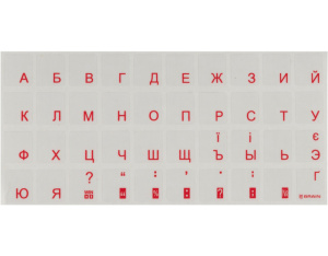 Наклейки на клавіатуру (рус./англ.) українська/російська, прозрачна основа, різний колір