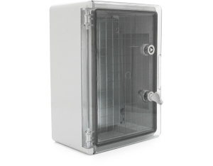 Бокс міцний з ABS пластику з монтажною панеллю 330х250х140, з прозорими дверцятами, IP65