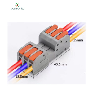 Клема роз'ємна з натискними затискачами 3-провідна DF-2604D, 3-pin, 250V, 32A, 0.2-4.0mm2, 18.8*43.5*15mm, сіра