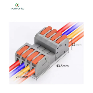 Клема роз'ємна з натискними затискачами 4-провідна DF-2604D, 4-pin, 250V, 32A, 0.2-4.0mm2, 23.6*43.5*15mm, сіра