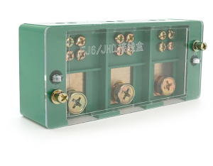 Паралельний розгалужувач-спліттер проводів FJ6 / JHD-3-6, 1фаза-3вхід М8, 6 виходу (латунь) 1,5-35х1,5-16мм2, AC600V, 60А, -55°С~125°С, 120*33*55мм,GREEN