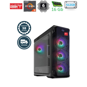 Комп'ютер MegaBiT Gaming R56R16512 (AMD Ryzen 5 5600 (3.5 - 4.4 ГГц) / B450 / RAM 16 ГБ DDR4 3200Mhz/ SSD 512 ГБ / nVidia Geforce GTX 1660 Super 8Gb DDR6/ Gigabit LAN / Wi-Fi AC / 500w/ без ОС)