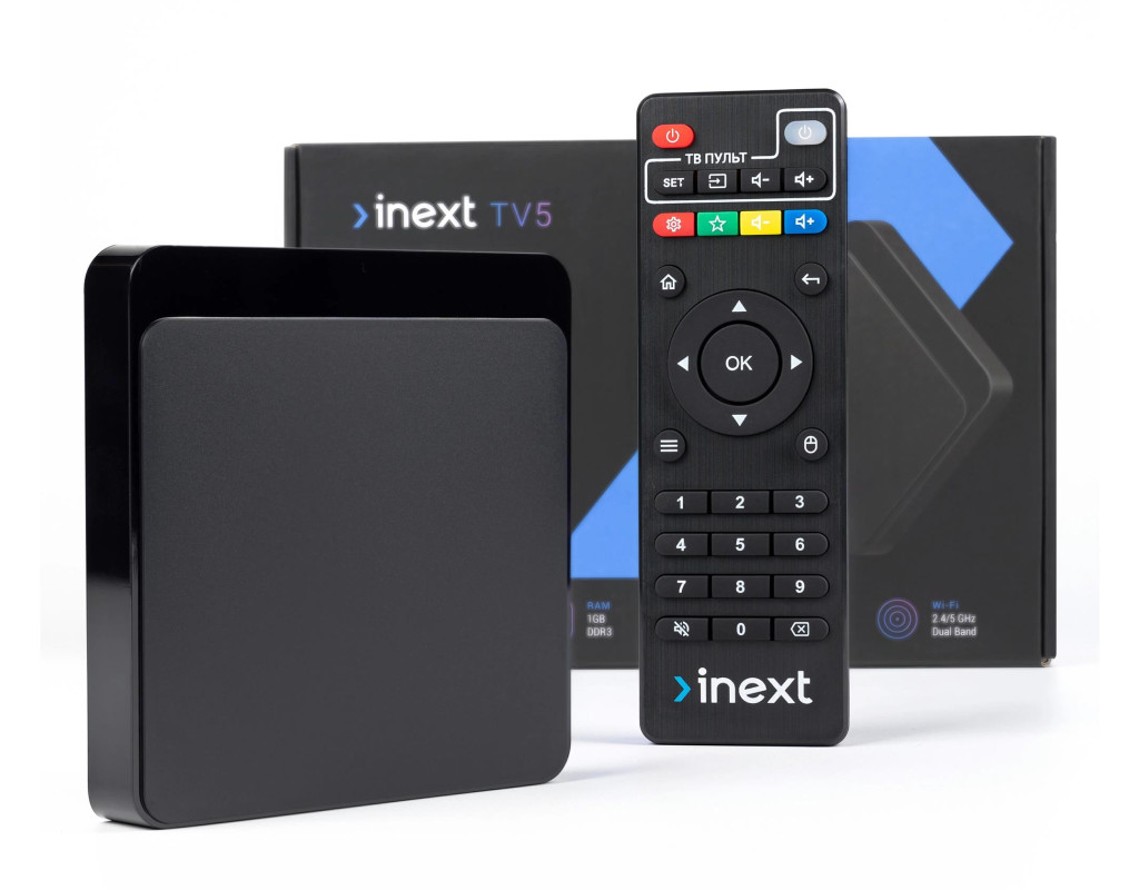 | iNeXT TV5 - медіаплеєр з операційною системою Android 10, новим потужним чипсетом Allwinner H313, дводіапазонним модулем WiFi 2.4/5 GHz і можливістю перегляду відео контенту у форматі 4K UHD. Об’єм вбудованої пам’яті становить 8 ГБ, а оперативної пам’яті - 1 ГБ (DDR3). Пристрій створений для комфортного перегляду відео-, фото- та аудіо контенту, має багатий функціонал і широкі можливості підключення.