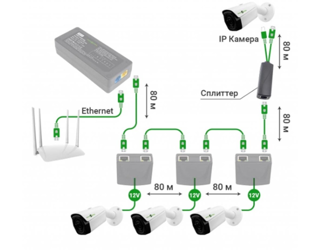 Адаптер PoE Greenvision POE 48-12V (6545)