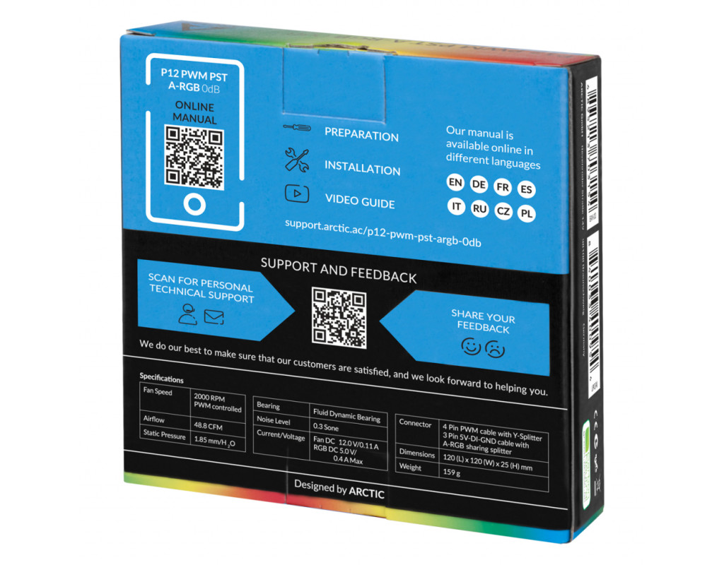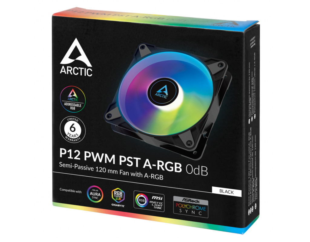 Arctic P12 PWM PST A-RGB - це все той же відмінний корпусний кулер P12, але тепер з адресується RGB підсвічуванням. Широкий діапазон оборотів від 0 до 2000 об / хв можна плавно і синхронно регулювати спільно з іншими вентиляторами завдяки технології PWM Sharing Technology (PST) від Arctic. |