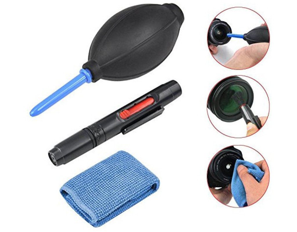 Набір Puluz 3 в 1 призначений для чищення оптики, об'єктивів, фотоапаратів, матриць, світлофільтрів та ін. Набір складається з груші, олівця та мікрофібри. Цього цілком достатньо для підтримки Вашої техніки у чистоті. Груша дозволяє повністю очистити поверхню від пилу. Клапан запобігає руху пилу у зворотний бік. Олівець з пензликом з одного боку і подушечкою, що чистить, з іншого ідеально впорається з великими частинками, жирними забрудненнями і відбитками пальців. Серветка з мікрофібри чудово вбирає вологу, витирає жир, збирає пил з корпусу техніки, фільтрів, дисплея при цьому не залишає. |