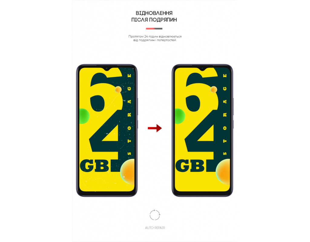 Властивість Auto-Repair — завдяки використанню гідрогелю, плівка відновлюється від косметичних подряпин і потертостей упродовж 24 годин.