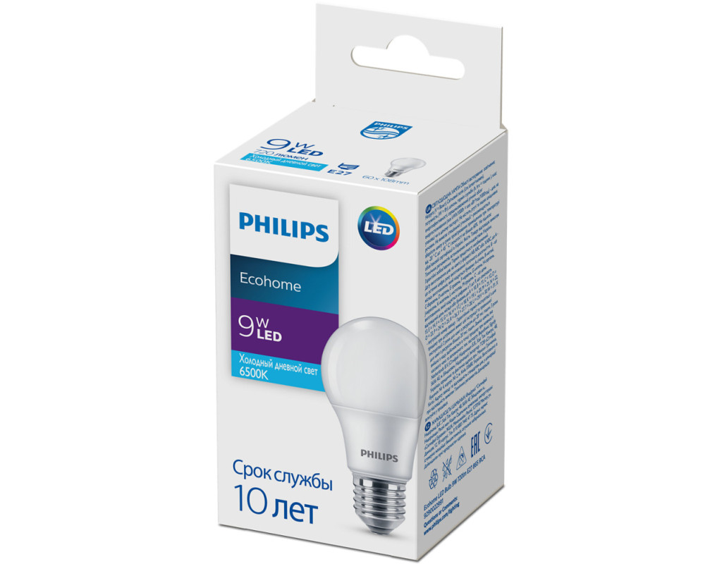 Лампочка Philips Ecohome LED Bulb 9W 720lm E27 865 RCA (929002299117)