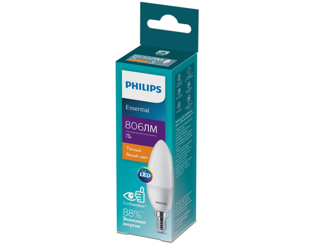 Лампочка Philips ESSLEDCandle 7W 806lm E14 827 B38NDFRRCA (929002972507)