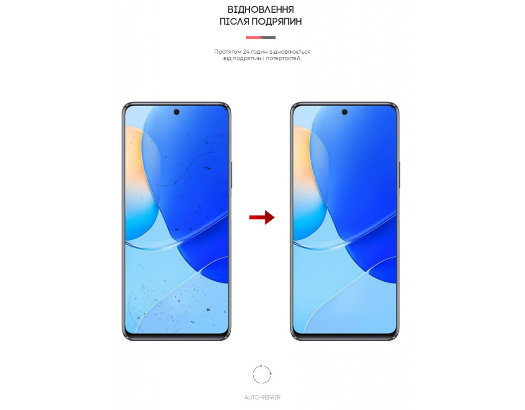 Властивість Auto-Repair — завдяки використанню гідрогелю, плівка відновлюється від косметичних подряпин і потертостей упродовж 24 годин.