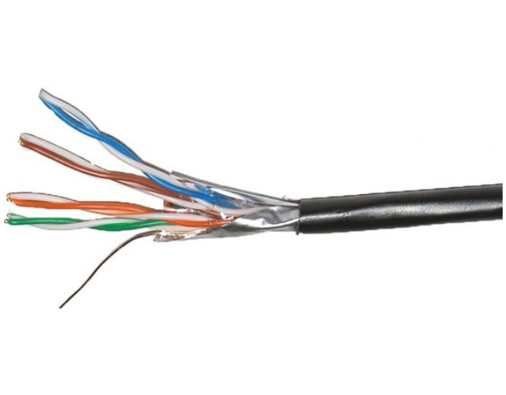 Умови експлуатації: Кабель призначений для стаціонарної прокладки в телефонній каналізації, в трубах, в колекторах, по зовнішніх стінах будівель. Особливістю даного типу кабелю є застосування плакованих міддю алюмінієвих провідників, що істотно зменшує вартість кабелю. Завдяки стандартними розмірами провідників і контролю якості мідного покриття при виробництві такий кабель можна використовувати практично без обмежень. При монтажі та експлуатації кабелю з ССА жилами слід уникати надмірних механічних навантажень на кабель та жили, оскільки ССА провідники поступаються за міцністю суцільномідним. Конструкція: Кабель складається з 4-х пар провідників звитих між собою. Провідники алюмінієві з мідним покриттям (ССА), проволока 24 AWG. Ізоляція провідників - поліетилен високої густини. Пари провідників розміщені в загальному екрані з алюмінієвої фольги під яким прокладений додатковий заземлюючий провідник. Зовнішня оболонка кабелю виготовлена із стабілізованого до впливу УФ випромінювання поліетилену чорного кольору. |