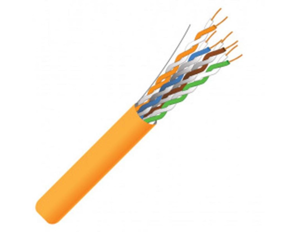 Четирехпарний FTP кабель FinMark категорії 5е призначений для застосування в локальних мережах передачі даних: PBX, V.11, X.21, ISDN, Ethernet (10Base-T), ATM-25/52/155 Мбіт / с, 100VG-AnyLAN, Fast Ethernet (100BASE-TX), Token Ring 16/100 Мбіт / с, Gigabit Ethernet (1000BASE-T), Firewire 100 Мбіт / с. Кабель призначений для стаціонарної прокладки всередині будівель, станцій, споруд, апаратури. Конструкція: Кабель складається з 4-х пар провідників звитих між собою. Провідники мідні 24 AWG. Ізоляція провідників - поліетилен високої щільності. Пари провідників розташовані в загальному екрані з алюмінієвої фольги, під яким прокладений додатковий заземлюючий провідник. Зовнішня оболонка кабелю виконана з Безгалогенні що не поширює горіння пластикату (LSZH) оранжевого кольору. Номінальний зовнішній діаметр кабелю 6,1 мм. |