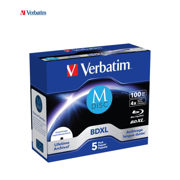 Диск BD Verbatim DL 100GB 4x Lifetime archival M-Disc 5шт Jewel (43834)