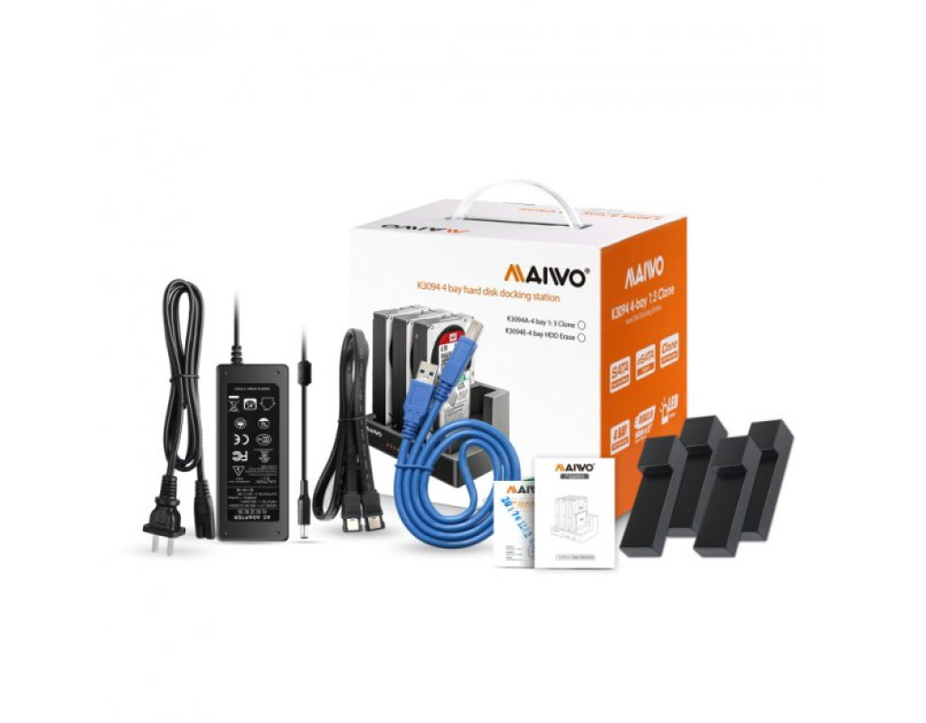 Док-станція Maiwo K3094A з функцією клонування дисків призначена для чотирьох жорстких дисків HDD 2,5"/3,5" SATA, а також для SSD-накопичувачів, інтерфейсів передавання даних USB 3.0. Док-станція має дуже стильний і практичний корпус, приємний на дотик. |