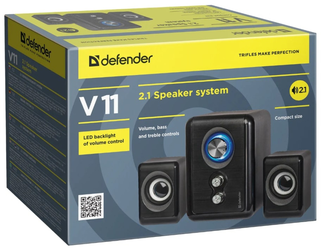 | Компактна акустична система 2.1 з LED підсвічуванням регулятора гучності. Особливість конструкції дає змогу налаштовувати тембр на передній сабвуферній панелі.