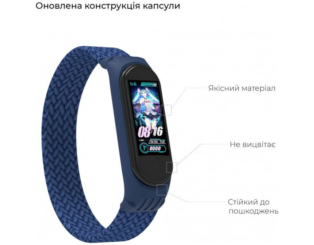 Ремінець до фітнес браслета Armorstandart Braided Solo Loop для Xiaomi Mi Band 4/5/6 Blue size L (ARM58758)