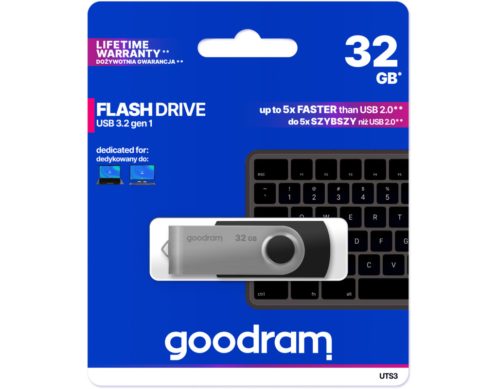 | UTS3 – це класичний носій інформації з найсучаснішим інтерфейсом USB 3.2 покоління 1, що забезпечує вищу швидкість, ніж попередні рішення. Завдяки високій швидкості передачі ваші дані можна скопіювати в найкоротші терміни. |