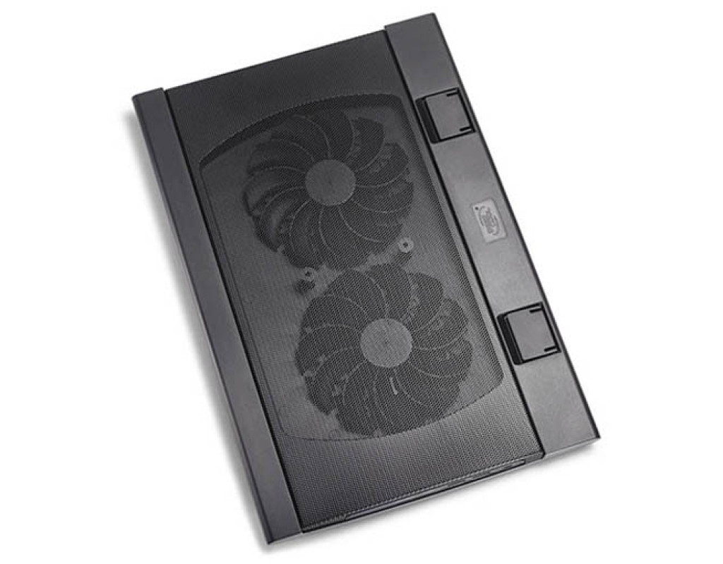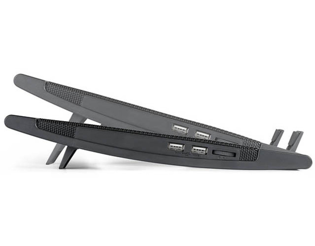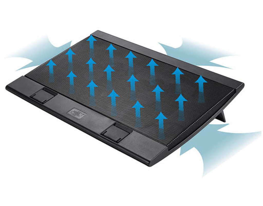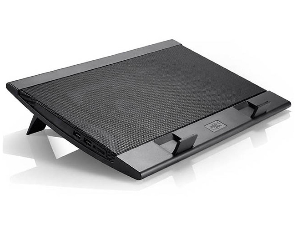 | Підставка для ноутбука Deepcool WIND PAL FS Компактний і тонкий дизайн Робоча поверхня, забрана металевою сіткою, і 2 х 14 см вентилятора забезпечують чудову здатність охладжающую Регулювання швидкості забезпечує ідеальний баланс між продуктивністю і великим повітряним потоком Два кута установки для зручної роботи Два упору для утримання ноутбука від зісковзування Рівень шуму - 21.5 дБА |