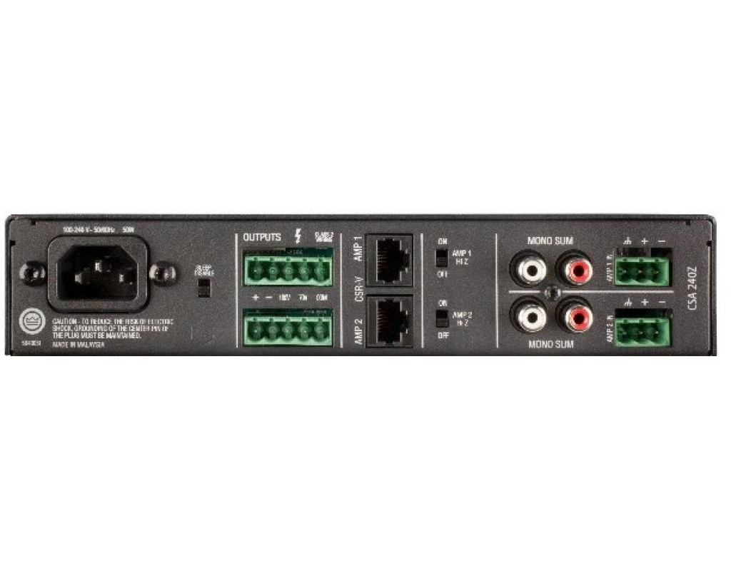 Кількість вихідних каналів: 2 Вихідна потужність 8Ом / 70В / 100В: 80 Вт / 80 Вт / 80 Вт; Вхідна чутливість (навантаження 8): 1.8 В Частотна характеристика на 8 Ом: 20 Гц: 20 кГц, +/- 1,0 дБ Загальна гармонійне спотворення (THD): - <0,5% Співвідношення сигнал-шум:> 100 дБ Вхідний опір (номінальний): євроблоки: 20 кОм (врівноважений) RCA: 50 кОм Максимальний вхідний рівень: + 22dBu (звичайний) Перехресні перешкоди (номінальна потужність, A-зважена, 1 кГц):> 70 дБ Тонні регулятори: баси +/- 10 дБ @ 100 Гц; Високочастотні +/- 10 дБ @ 10 кГц Номінальні напруги змінного струму 100В, 120В, 220В, 230-240В, 50/60 Гц; Розміри (ШхГхВ) - 218.5 мм х 303.4 мм х 43.3 мм; Вага - 4.0 кг |