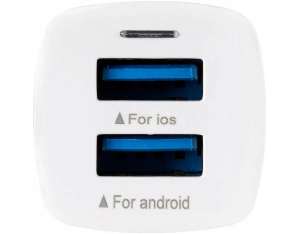 Тип - адаптер, Живлення - прикурювач автомобіля, тип вихідного підключення - USB, Max - 3.1 А, кількість USB портів - 2 x USB, білий