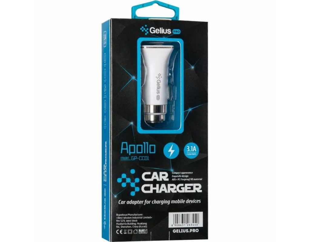 Зарядний пристрій Gelius Pro Apollo GP-CC01 2USB 3.1A + Cable Type-C White (00000071435)