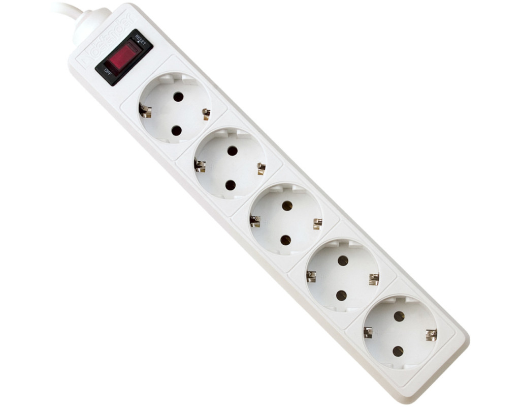 Кількість розеток - 5, Довжина кабелю - 1.8 м, заземлюючий контакт, із загальним вимикачем, Сумарна потужність підключеного навантаження - ≤ 2200 Вт, Колір - білий