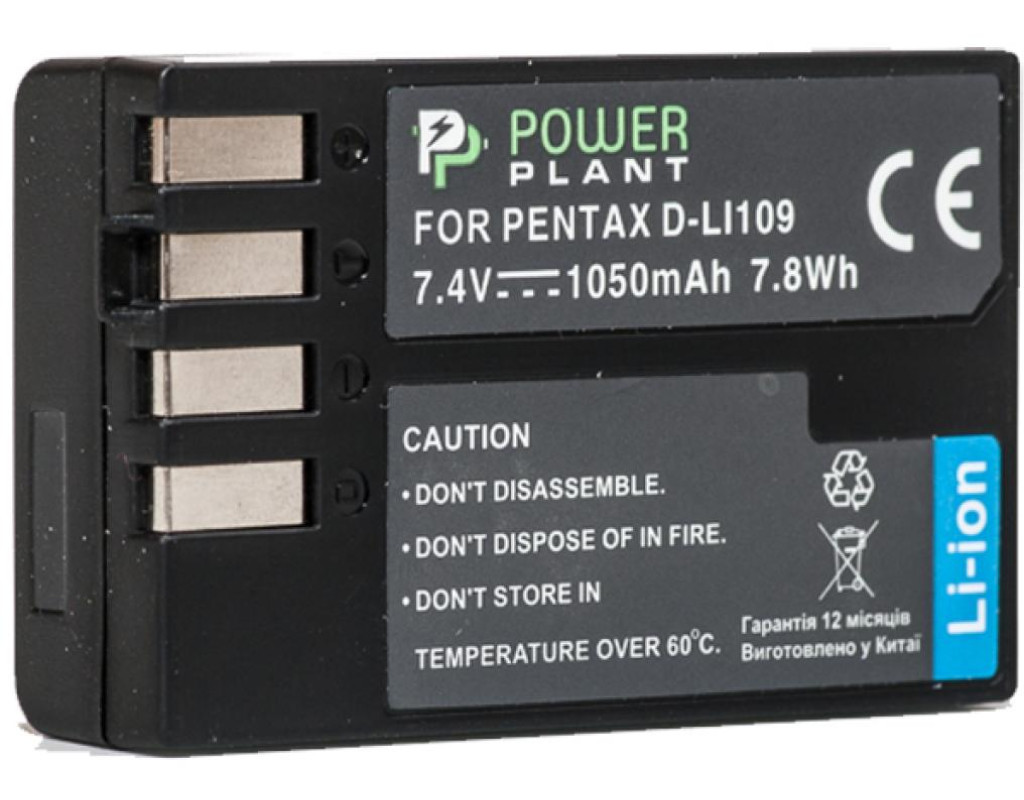 | Акумулятор PowerPlant Pentax D-Li109 (DV00DV1283) - це сучасна літієво-іонна батарея для фото і відеокамер, яка забезпечить тривалий час автономної роботи Вашого пристрою. Акумулятор PowerPlant це повноцінний аналог оригінального акумулятора. У виробництві використані тільки високоякісні елементи живлення і японські чіпи оригінальних виробників, тому акумулятор володіє високою енергетичною щільністю, низьким саморозрядом, зберігає заряд навіть при тривалому використанні, а відсутність "ефекту пам'яті" і здатність швидко перезаряджати його не досягаючи повної розрядки, можна віднести до ключових переваг. Фірма PowerPlant гарантує безпеку використання батареї PowerPlant c Вашим фотоапаратом або відеокамерою. |