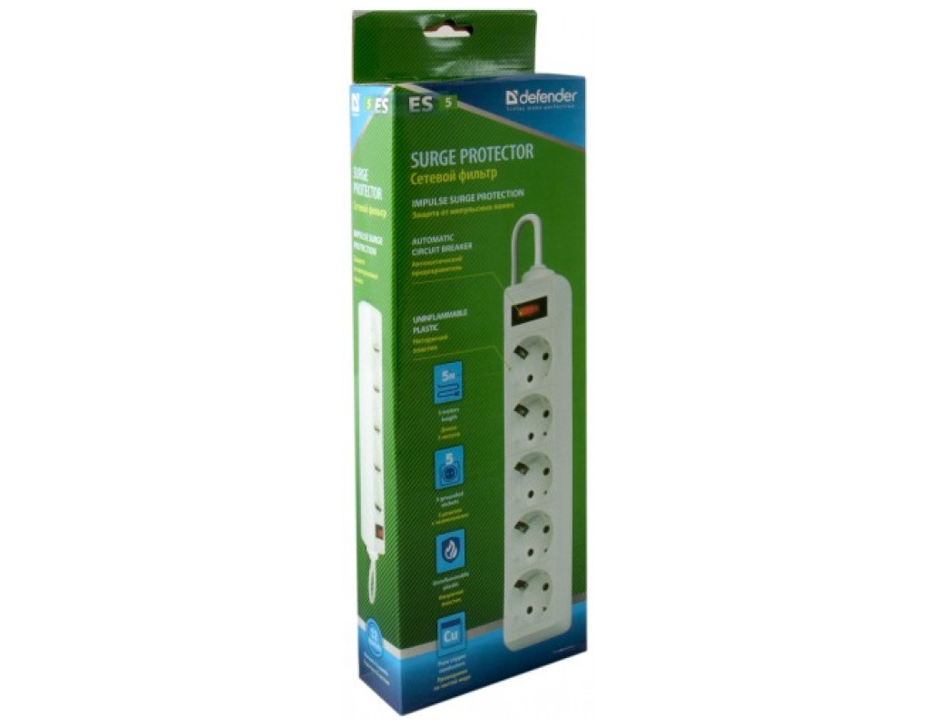 | Мережевий фільтр живлення Defender ES 5m 5 роз. white (99483) — пристрій початкового рівня, економічний варіант вирішення проблеми захисту електроживлення. Призначений для підключення широкого спектру побутової та електронної техніки, включаючи чайники і електронагрівачі. Мережевий фільтр Defender ES на "борту" має п'ять розеток євростандарт, захищає електронну техніку від короткого замикання, перевантажень по струму і імпульсних перешкод. |