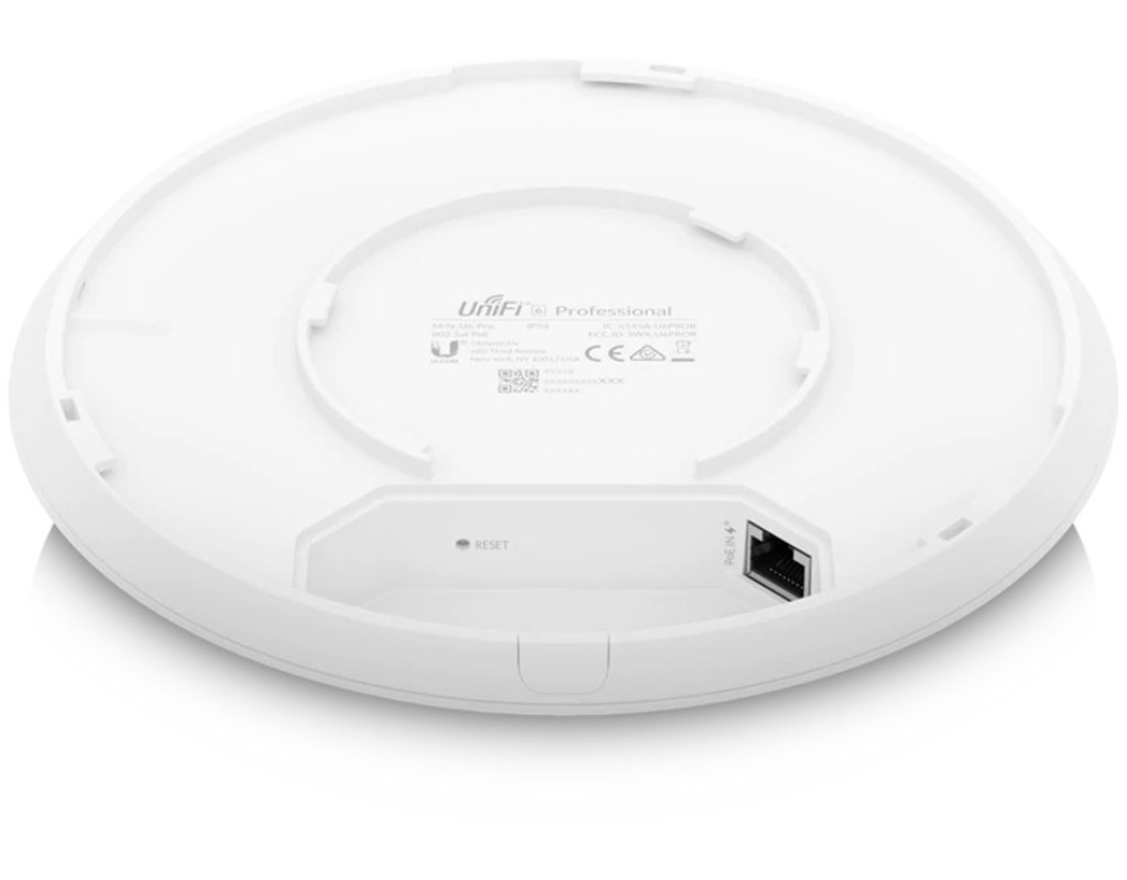 Unifi 6 Pro — це високошвидкісна точка доступу стандарту Wi-Fi 6 (802.11ax) збільшеної потужності для систем з великою кількістю пристроїв. Пропускна здатність точки доступу Unifi 6 Pro перевищує 5.3 гігабіт, складаючись з 4,8 Гбіт на частоті 5ГГц 4x4 і більше 570 Мбіт в діапазоні 2,4ГГц 2x2, і дозволяє забезпечити підключення більш ніж 300 клієнтів. Призначення U6-Pro - Wi-Fi покриття в корпоративних та домашніх системах із високою щільністю пристроїв. За швидкий, надійний зв'язок у діапазонах 2.4 ГГц та 5 ГГц відповідають вбудовані антени MIMO з коефіцієнтом посилення 4 та 6 dBi відповідно. Unifi 6 Pro зворотно сумісна з попередніми стандартами Wi-Fi IEEE 802.11, тому не виникне необхідність заміни парку клієнтських пристроїв. У той же час широко поширене обладнання Wi-Fi 5 стандарту 802.11ac зможе вийти на новий рівень швидкості обміну даними, що досягає 3.4 гігабіту в секунду, завдяки збільшенню ширини каналу до 160 МГц. Для спрощення встановлення та налаштування Unifi 6 Pro отримає бездротовий інтерфейс Bluetooth, аналогічний тому, яким вже обладнано точку доступу UniFi 6 Long-Range. Нова точка доступу підтримує діапазон напруги живлення від 44 до 57В DC, що подається за технологією PoE+, через стандартний кабель Ethernet. Безпечну передачу даних забезпечує ізоляція гостьового трафіку та підтримка алгоритму WPA3 у нових версіях контролера UniFi Network. Крапки доступу з індексом PRO залишаються актуальними тривалий термін, аж до 10 років. Кріплення Unifi 6 Pro, ймовірно, будуть відповідати сучасному варіанту UniFi AC Pro, забезпечуючи просту модернізацію системи. |