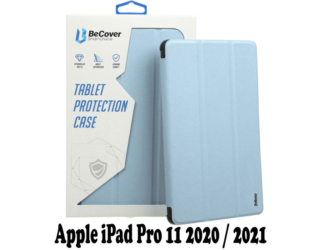 Тип - обкладинка, Сумісність з моделями - Apple iPad Pro 11 2020, Apple iPad Pro 11, Apple iPad Pro 11 2021, Apple iPad Pro 11 2022, діагональ - 11, Спосіб кріплення - обкладинка, Матеріал - термополиуретан, штучна шкіра, блакитний