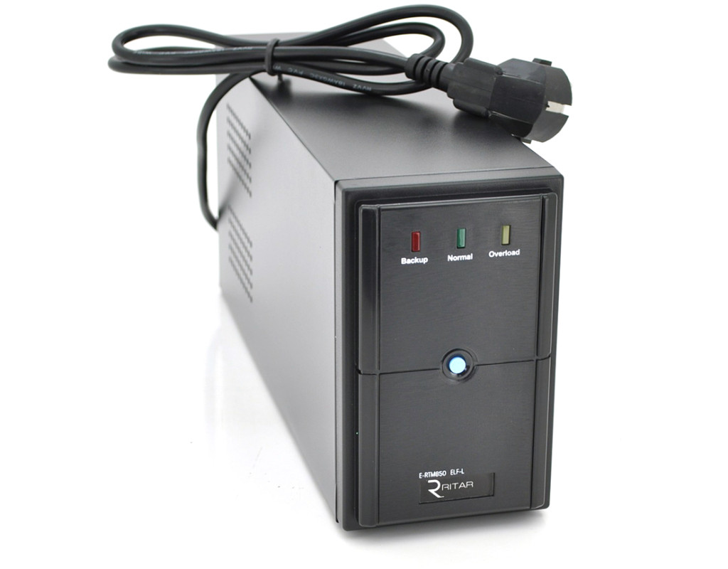 | UPS Ritar E-RTM850 (510W) ELF-L (E-RTM850L) для домашніх ПК, лінійно-інтерактивний (line interactive), 510 Вт, 850 В*А, апроксимована (ступінчаста) синусоїда, 160-275 В, АКБ - вбудований / 9 AH x 1, LCD - без дисплея, 85 x 140 x 310 мм, 5.8 кг |