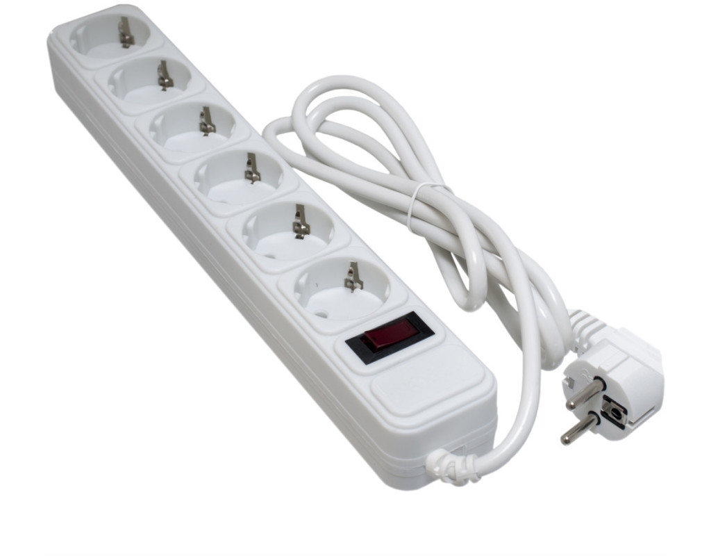Кількість розеток - 6, Довжина кабелю - 1.8 м, заземлюючий контакт, із загальним вимикачем, Сумарна потужність підключеного навантаження - ≤ 2200 Вт, RTL, Колір - білий
