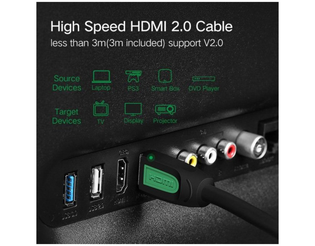 Кабель мультимедійний HDMI to HDMI 3.0m HD101 Round (Yellow/Black) Ugreen (10130)