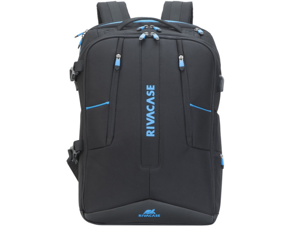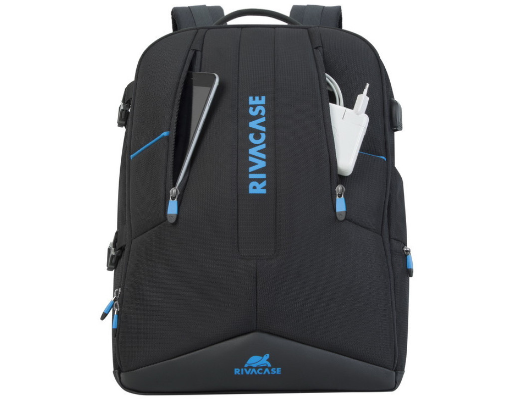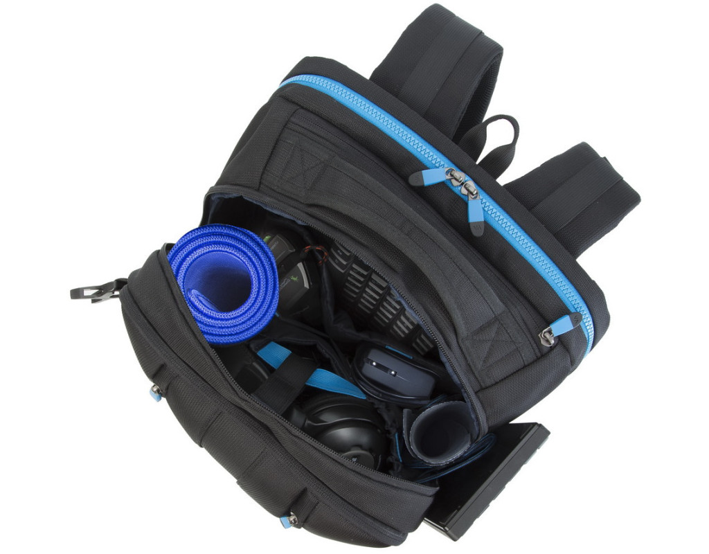 Виготовлений з високоякісної, водовідштовхувальним тканини з використанням EVA для посилення конструкції. Основне відділення для ноутбука з вертикальним завантаженням, має м'які стінки, утолщенное дно і додаткове внутрішнє відділення для планшета до 10.1 ". Простора секція на блискавці для зберігання всіх необхідних ігрових аксесуарів - навушники, миша, килимок, повнорозмірна клавіатура. На бічній стороні рюкзака є USB -порт для підключення портативного зовнішнього акумулятора. Передня кишеня на блискавці для зберігання аксесуарів, зарядного пристрою, візитних карток, авторучок, смартфона, документів. Зручна м'яка ручка для перенесення і нап ечние ремені з пом'якшуючими підкладками допоможуть відчувати себе комфортно в найдовшому подорожі. На задній стінці є ремінь кріплення до багажної сумки і прихований кишеню на блискавці для паспорта, гаманця. Бічна кишеня для ємності з водою. Чохол від дощу в комплекті. |
