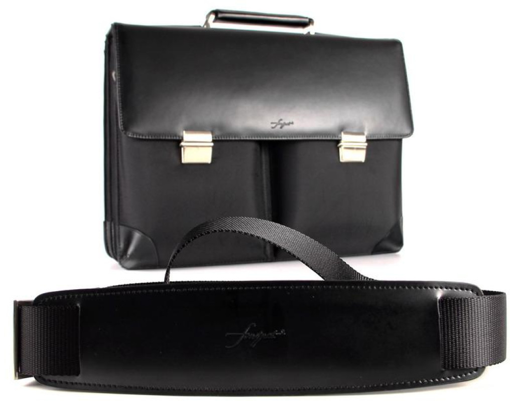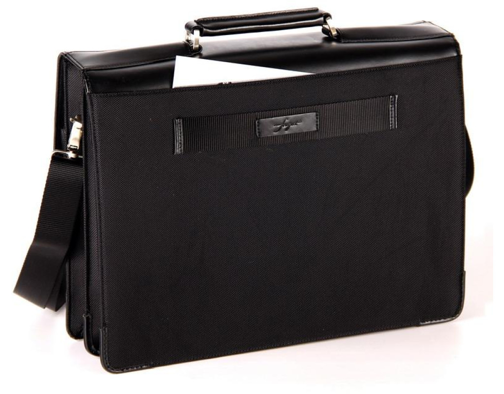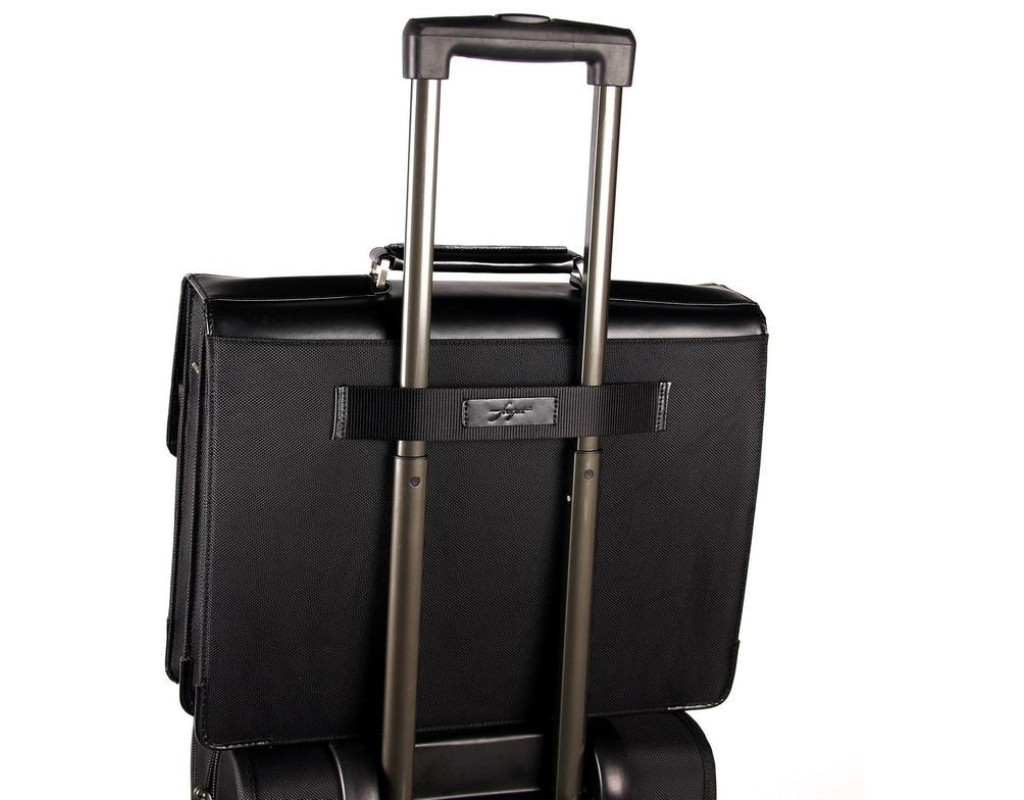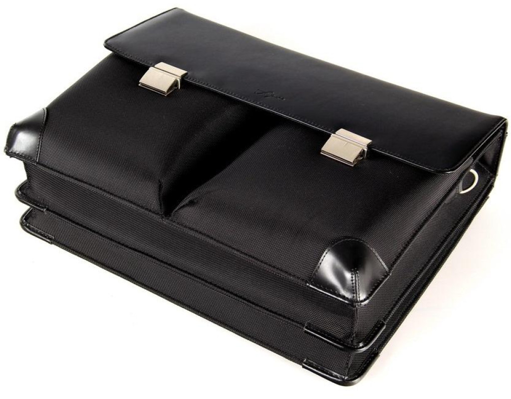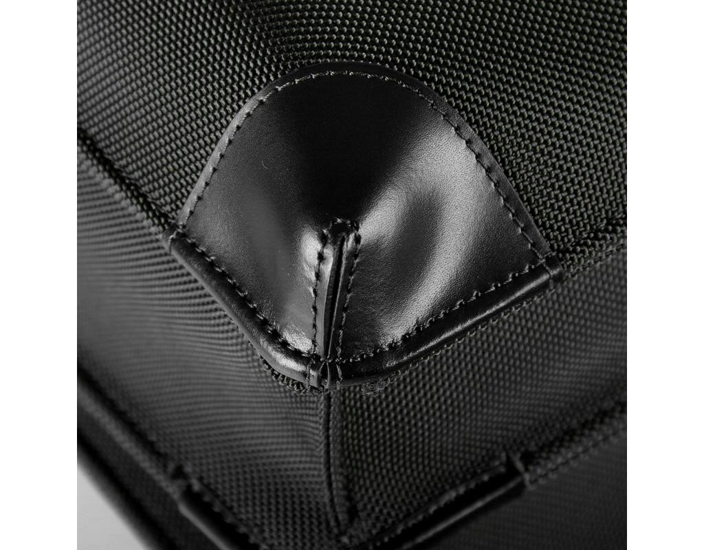 Ручка та оздоблення з високоякісної шкіри. Основний матеріал - ультраміцний нейлон 1680 Den. Логотип на нейлоні всередині сумки. Практичні і великі фронтальні відділення. Відділення для авторучок, бізнес-карт, тощо. Регульований зйомний плечовий ремінь. Ремінь для кріплення на ручці багажної сумки-візка. Спеціальне захищене відділення для ноутбука. |