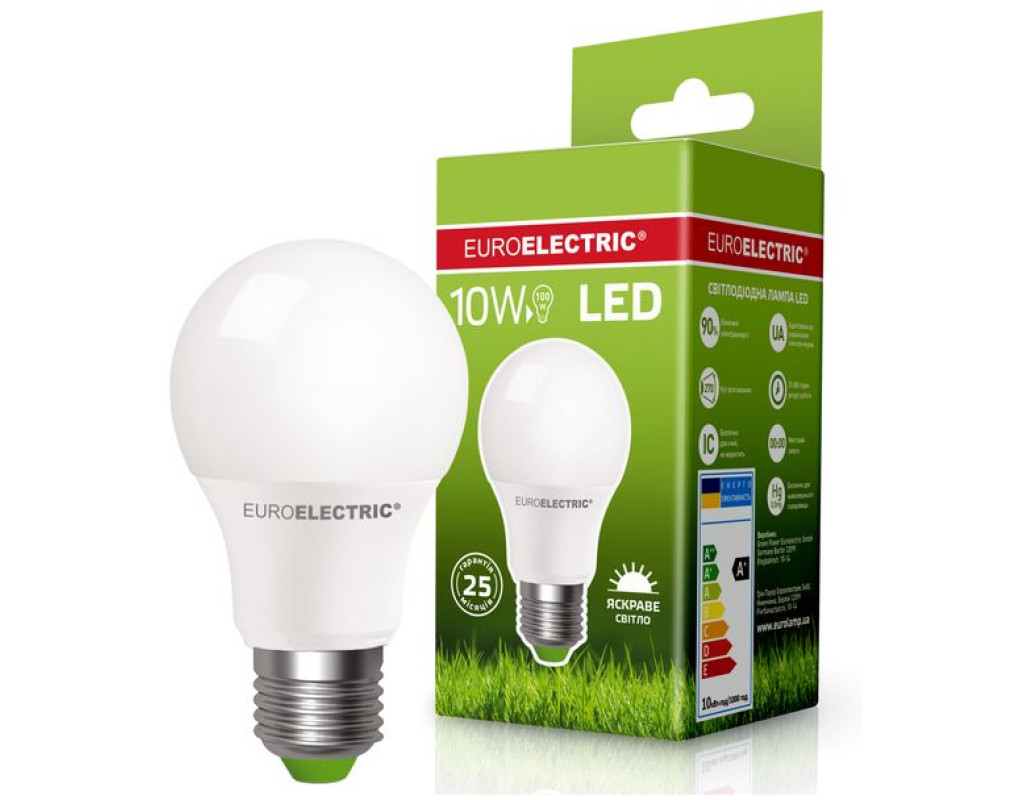 Класична світлодіодна EUROELECTRIC LED Лампа А60 10W E27 4000K Світлодіодна лампа Eurolelectric A60 10W E27 4000K призначена для організації основного освітлення у житлових та побутових приміщеннях. При виробництві лампи використовується особливий полімерний сплав, створення якого використовується сучасна технологія хімічної обробки. Завдяки даному екологічному пластику лампа є абсолютно безпечною для здоров'я людини та навколишнього середовища. Лампа витримує перепади напруги в діапазоні 175-265 без наслідків працездатності. Особливості: