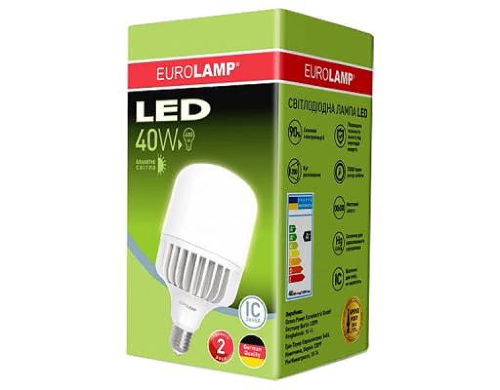 Лампа EUROLAMP E27 (LED-HP-40276) - світлодіодна лампа потужністю 40 Вт є високоякісною екологічною та економічною LED технологією за доступною ціною. У виробництві лампи використовуються безпечний для здоров'я людини полімерний сплав і вдосконалені довговічні системи тепловідведення.