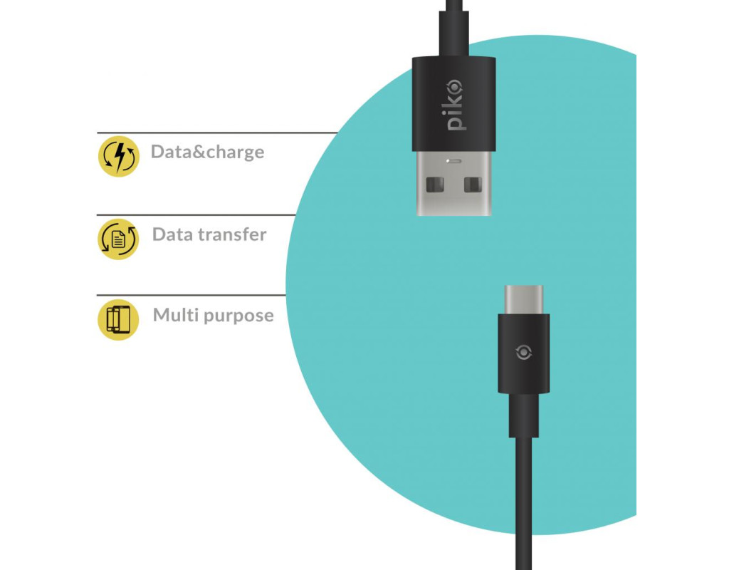 Дата кабель USB 2.0 AM to USB-C 2.0m black Piko (1283126493850)