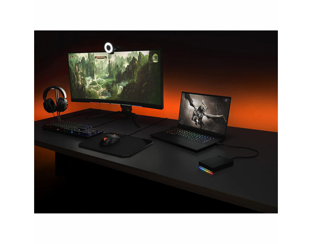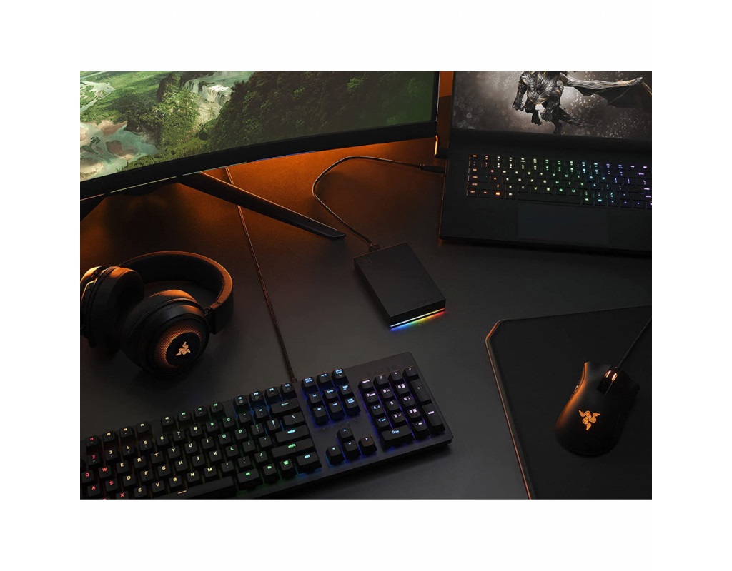 Підключіть і запаліть ігровий жорсткий диск FireCuda. Цей ігровий жорсткий диск з ємністю до 5 ТБ і стильним сміливим дизайном може вмістити всі ваші ігри і доповнити зовнішній вигляд вашої бойової станції. І привнесіть додатковий шар атмосфери в ігрові сесії за допомогою настроюваної світлодіодним RGB-підсвічування. |