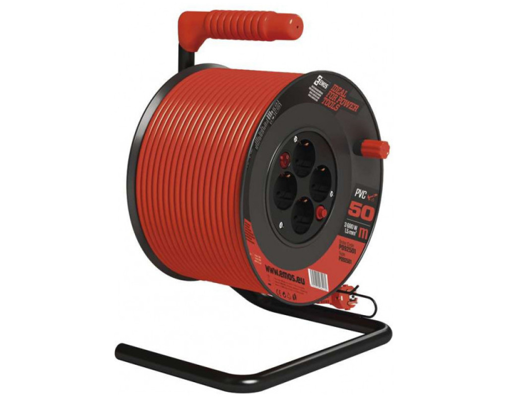 Подовжувач на котушці P092501 від чеського виробника Emos. Має перетин кабелю 1,5 мм що обумовлює підвищену стійкість до навантажень від використання приладів з великим енергоспоживанням. Основні параметри: