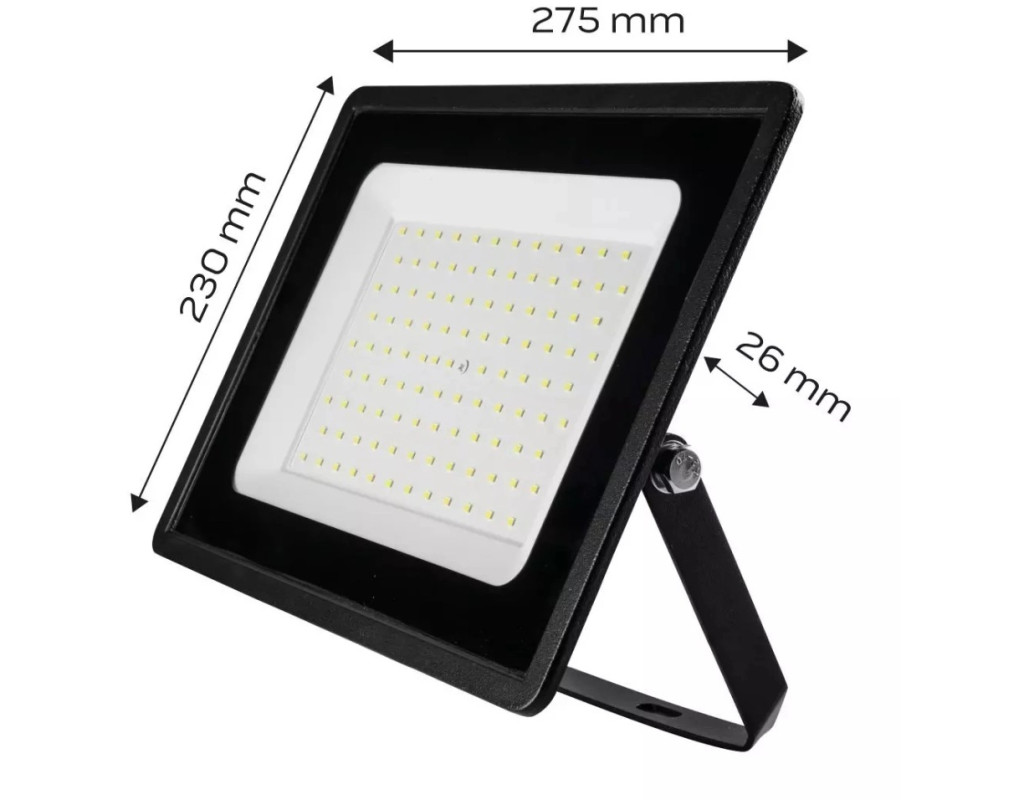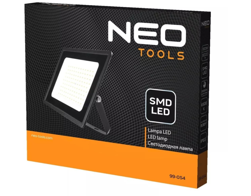 | Прожектор Neo Tools, алюміній, 220 В, 100Вт, 8000 люмен, SMD LED, кабель 0.3 м без вилки, IP65. Рефлектор SMD 100Вт, 99-054, NEO, використовується для освітлення проїздів, терас або входів до будинків. Його також можна використовувати у приміщенні, наприклад, у гаражі чи підвалі. Кут освітлення становить 100°. Пристрій має міцну конструкцію, оскільки світлодіод LED поміщений у алюмінієвий плафон за склом. Ступінь захисту корпусу IP65 означає, що він пило-і водонепроникний. |