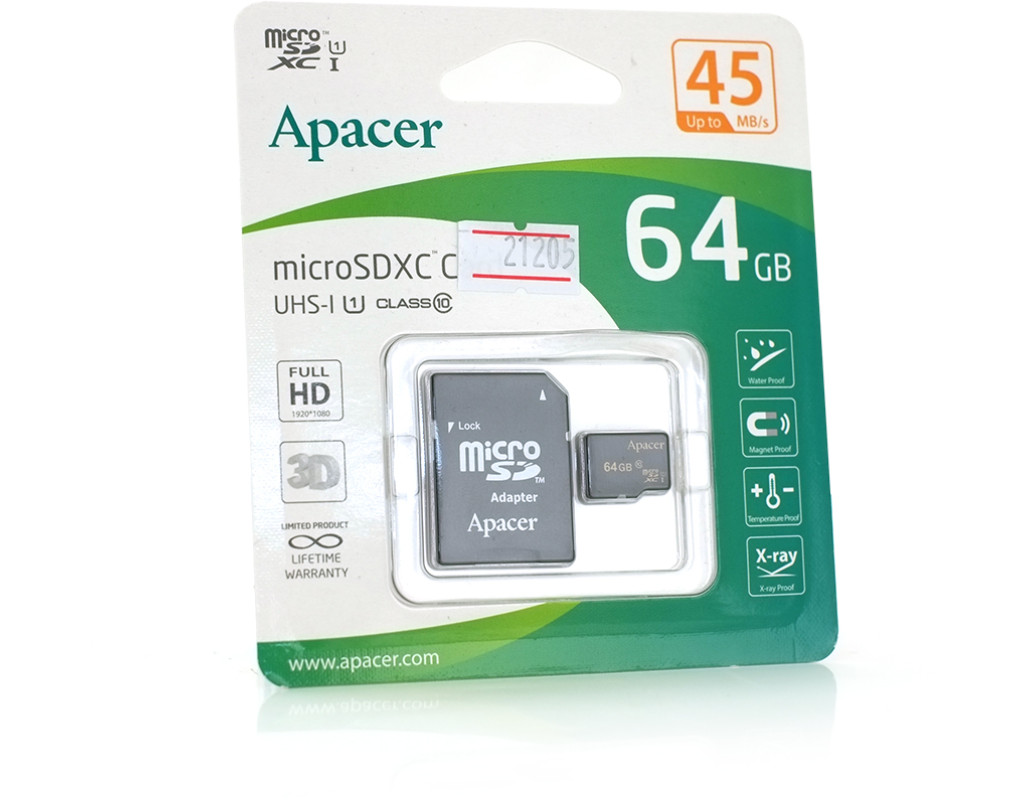 Карта пам'яті Apacer microSDHC Class 10 UHS-I, 64GB