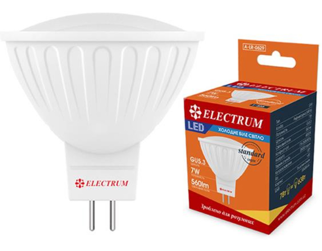 | Світлодіодна лампа ELECTRUM MR-16 7W GU5.3 4000K A-LR-0629 має матову колбу рефлекторного типу і випускається з цоколем GU5.3. Серед усіх різновидів побутових лампочок LED – одні з найбільш енергоефективних. З потужністю всього 7 Вт дані ЛЕД лампи споживають у 8 разів менше електрики, ніж подібні до них за світловими характеристиками 60-ватні лампи розжарювання.